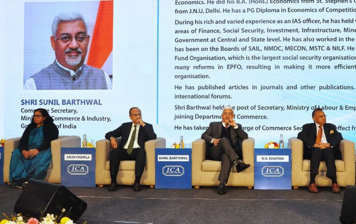 Ms Keka Sarma, Director, Bharat Chamber of Commerce, Shri Arun Chawla, Director General of Indian Council of Arbitration, Shri Sunil Barthwal, IAS, Commerce Secretary, Ministry of Commerce and Industry, Government of India, Shri N G Khaitan, President of Bharat Chamber of Commerce were present at the symposium on “UNRAVELLING INDIA’S NEW FOREIGN TRADE POLICY FOR INDIA’S GROWTH” organised by Bharat Chamber of Commerce and Indian Council of Arbitration.