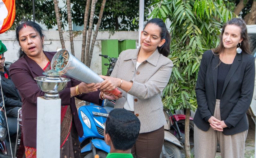 Ms. Anjum Moudgil , Olympian & Shooter, Prof. Manoshi Roychowdhury, Co-Chairperson, Techno India Group and Ms. Pauline Laravoire, Sustainability Director, Techno India Group lighting the Torch at the opening ceremony of Te